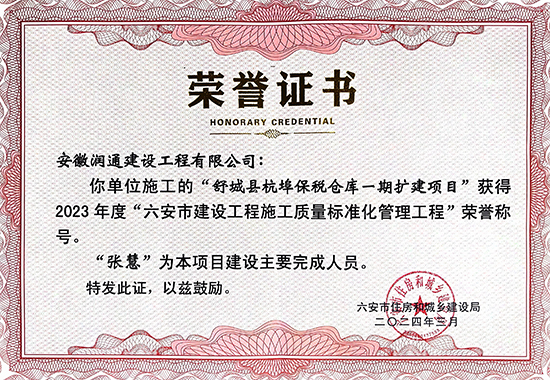 安徽潤通建設工程有限公司創建于1972年4月,是一家以路橋施工為基礎,主營瀝青路面工程施工的跨行業、多專業的施工企業。公司現已發展為注冊資本金1.1177億元,擁有固定資產近5億元,年施工產值在 10 億元以上的公路工程施工總承包貳級企業,除主項公路資質外,公司還擁有市政公用工程施工總承包貳級、水利水電工程施工總承包貳級、建筑工程施工總承包貳級,另有建筑裝修裝飾工程、環保、路基、堤防工程、鋼結構等專業分包資質。公司現有員工600多人,各類專業技術、經濟管理人員300多人,其中高級職稱人員20人,中級職稱人員158人,一級建造師12人,二級建造師34人,擁有各類施工機械設備和質量檢測設……